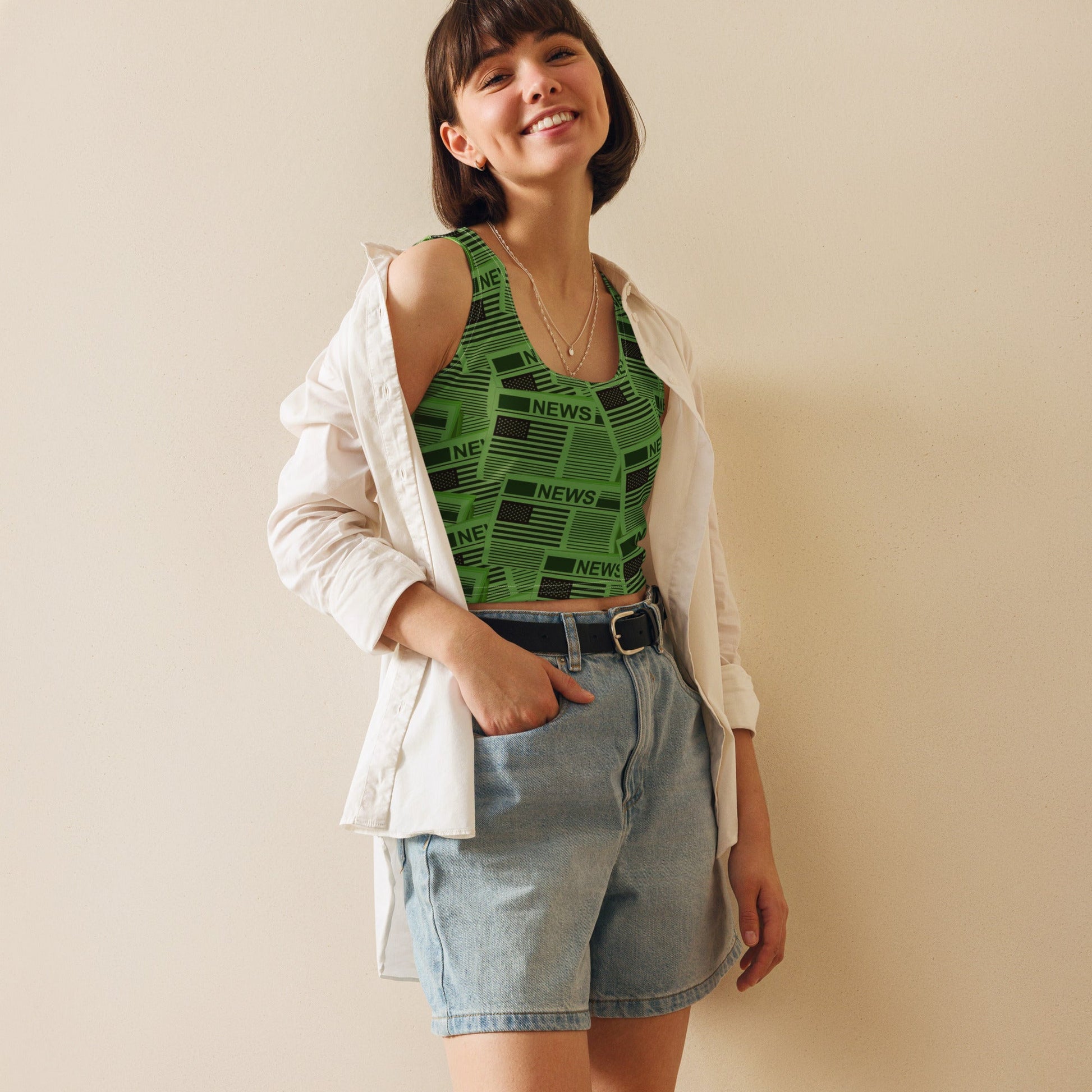 USA Newspapers Crop Top (Green)