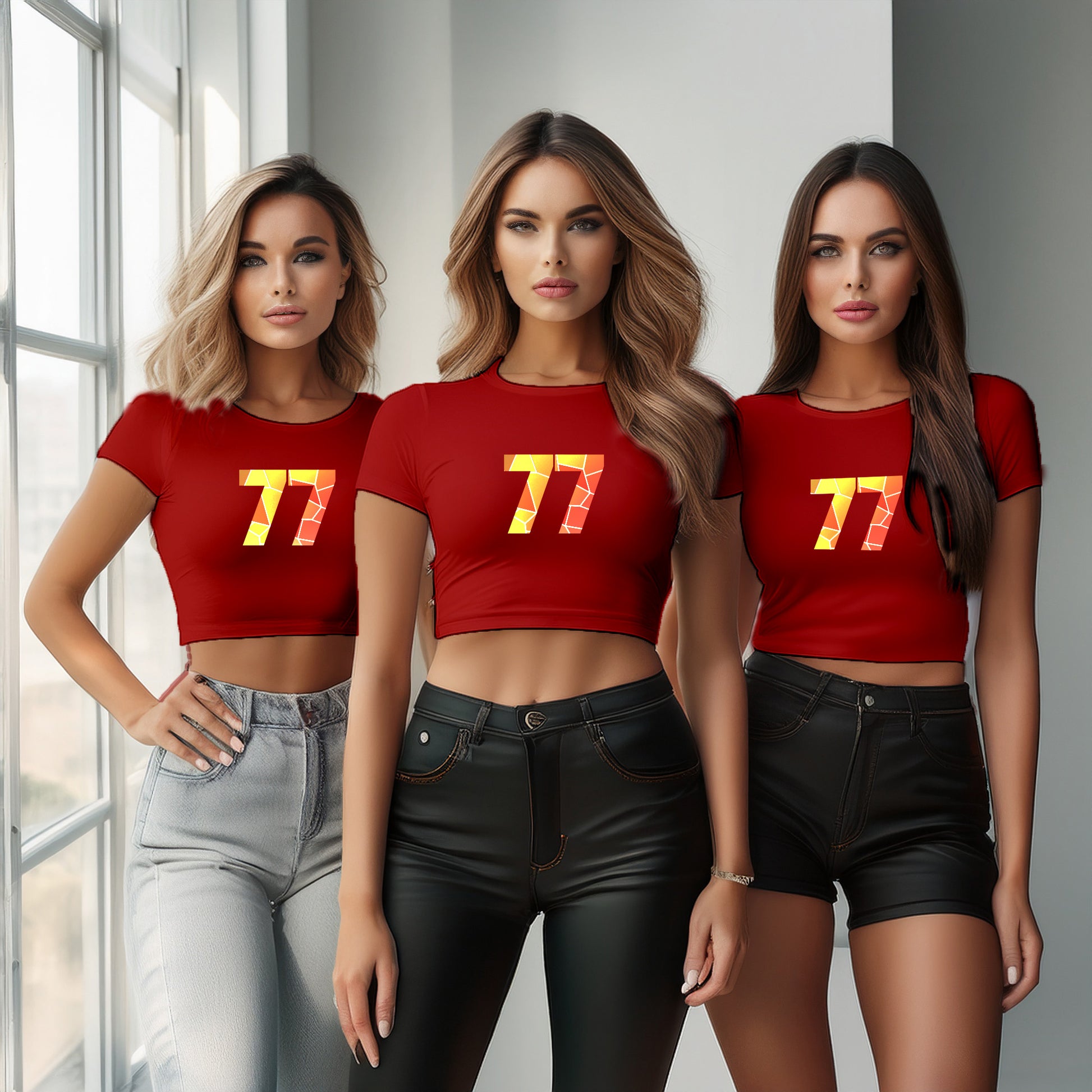 77 Number Women Crop Top (Red)